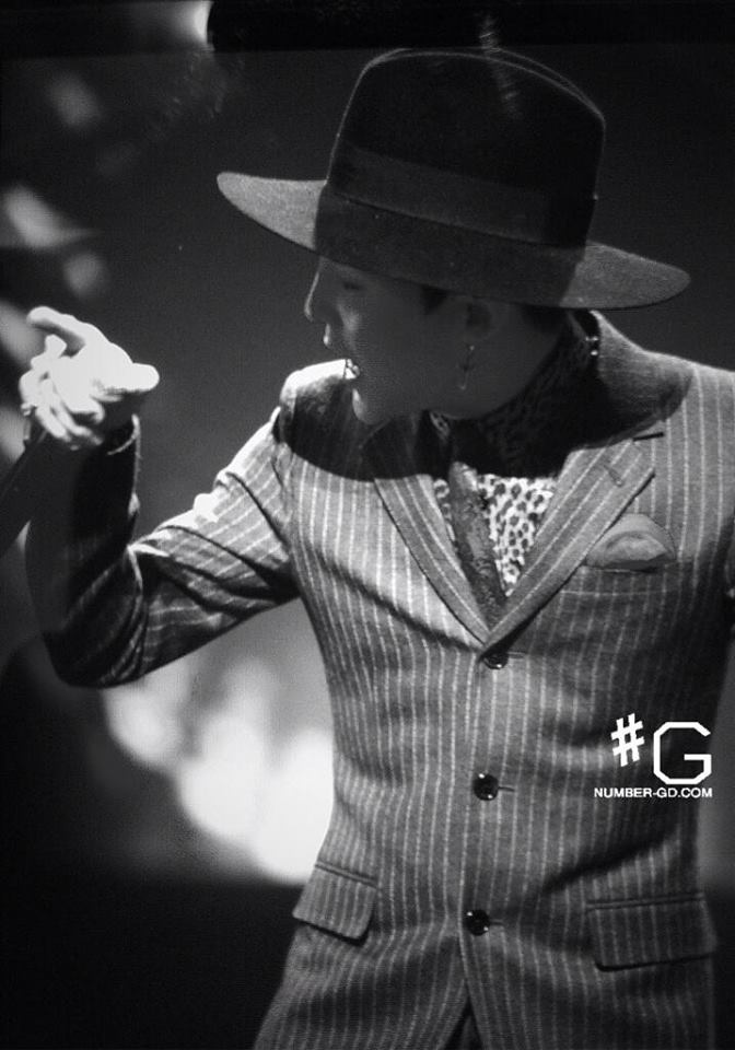 | G-Dragon diện mũ đen và vest kẻ. Bộ trang phục này không chỉ tôn thêm nét thanh lịch của một quý ông mà còn giúp anh có thêm vài ba cm khi lên sân khấu. |