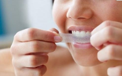 Làm trắng răng bằng miếng dán tẩy răng chuyên dùng