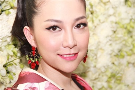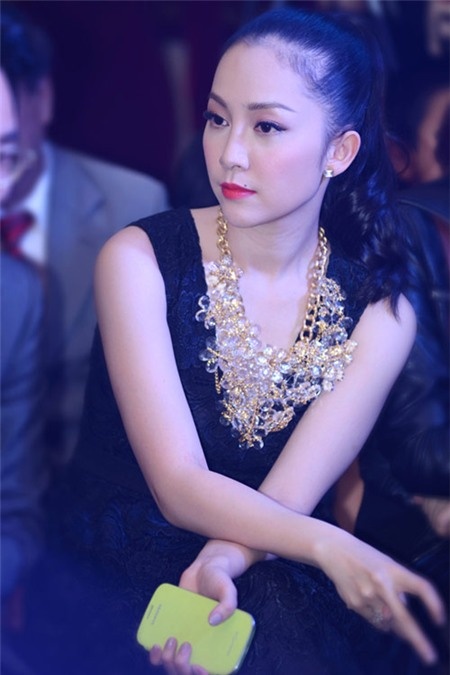| Linh Nga không kém phần quyến rũ với tóc cột cao. |