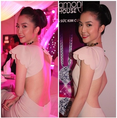 | Linh Nga khoe lưng trần thon thả thời con gái. |