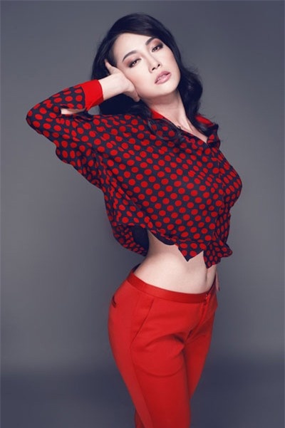 | Trang điểm quý phái với màu son đỏ rực, Linh Nga gây ấn tượng với phong cách sang trọng. |