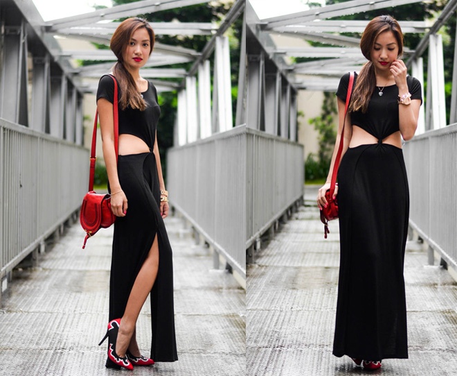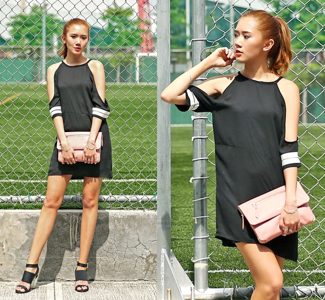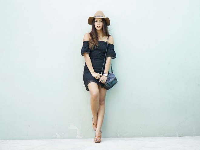 | 1. Diện váy đen chất như Camille Co. Hot blogger 9X nổi tiếng bắt nhịp nhanh nhạy mốt áo vai lỡ đang rất “hot” trong thu, với váy cut-out tay lỡ độc đáo. Đây cũng là kiểu trang phục giúp bạn đổi mới phong cách công sở theo hướng trẻ trung và gợi cảm hơn. |