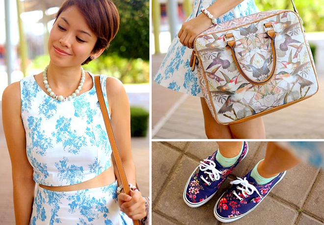 | Nếu thích phối họa tiết với họa tiết, cô nàng yêu màu xanh có thể tham khảo một set đồ khác rất đậm chất “Bea Benedicto”. |