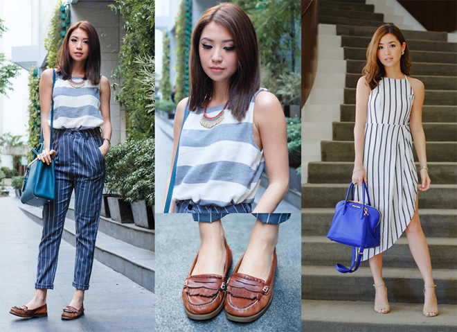 | 3. Mix họa tiết sọc tinh tế như Kryz Uy. Kryz Uy là tên tuổi hàng đầu trong làng hot blogger châu Á. Cô gái xinh đẹp này luôn thiên về phong cách mix, match đơn giản nhưng tinh tế, hiện đại, trẻ trung và rất năng động. |
