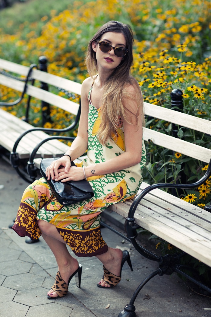 | Cách kết hợp giày mules với váy midi họa tiết rất thích hợp với các bạn gái. |