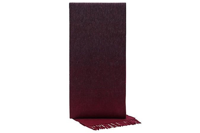 Khăn: Đông năm nay nam giới chuộng quàng khăn cashmere màu đỏ ombre và sắc đá quý của thương hiệu Reiss. Chất liệu cashmere đảm bảo sự thoải mái cho người dùng, không cho cảm giác ngứa ngáy khó chịu như khi quàng khăn len thường. Giá sản phẩm là 70 bảng. |