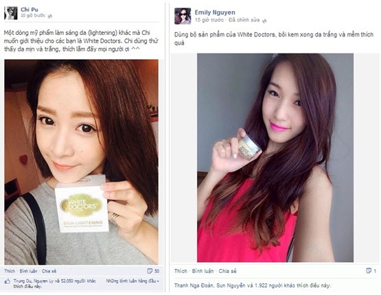 Công cụ dưỡng trắng da mà các hot girl tin dùng chính là White Doctors. Sam, Linh Napie, Lily Luta, Kelly Nguyễn, Vân Navys Hous, Yuu Quỳnh Nhi, Hồng Vân, Trịnh Hồng Quế, An Phương, Ribi Sachi, Hương Mì Gói, Sĩ Thanh, Chi Pu, Huyền Anh ( Bà Tưng ), Kiều Phạm, Emily Nguyễn, Mờ Naive, Trương Quỳnh Anh, Hà Min, Á Hân Lâm, Hoàng Mây, Elly Trần, Đàm Phương Linh… đều đang sử dụng sản phẩm này.