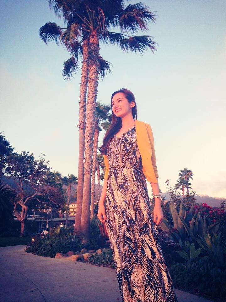 | Ngọc Hân sử dụng blazer trắng khi mix kèm maxi họa tiết trẻ trung. |