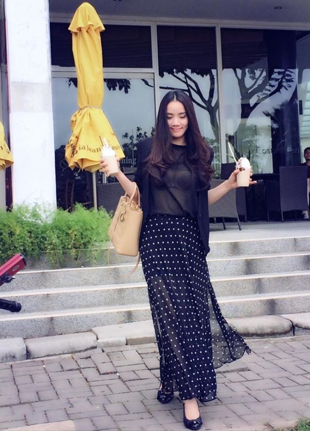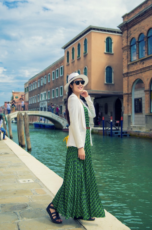 | Trúc Diễm kết hợp maxi với blazer dáng ngắn trẻ trung. |