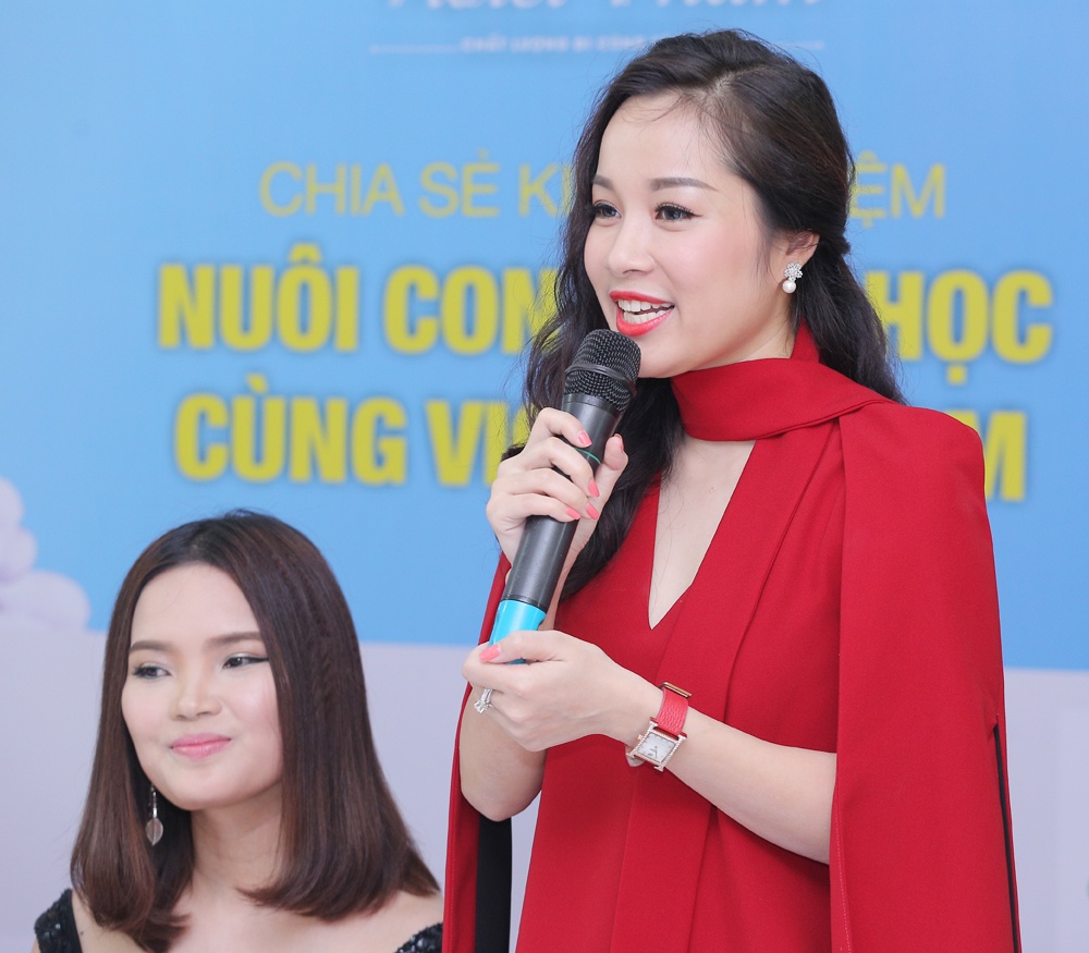 | Ngày 19/6, BTV Hoài Anh cùng Hoa hậu Dương Thùy Linh, diễn viên Minh Hương, Diệu Hương và Thanh Hoa tham dự một sự kiện chia sẻ kinh nghiệm nuôi con tại Hà Nội. |