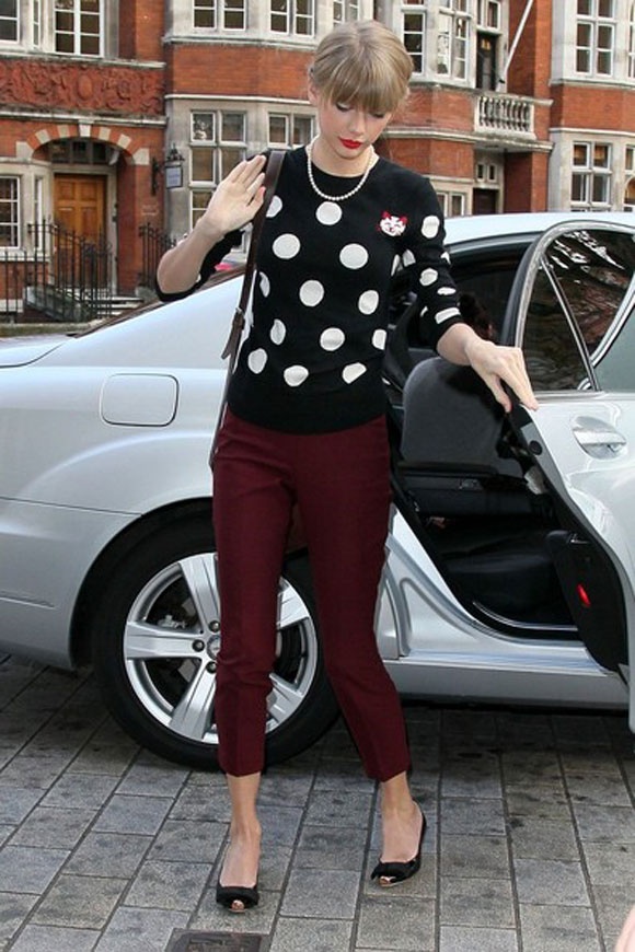 Taylor vô cùng tinh tế khi phối các tông màu sắc hài hòa, đậm nhạt và có tông màu liên quan đến phụ kiện để tạo sự hoàn hảo cho phong cách của mình. |