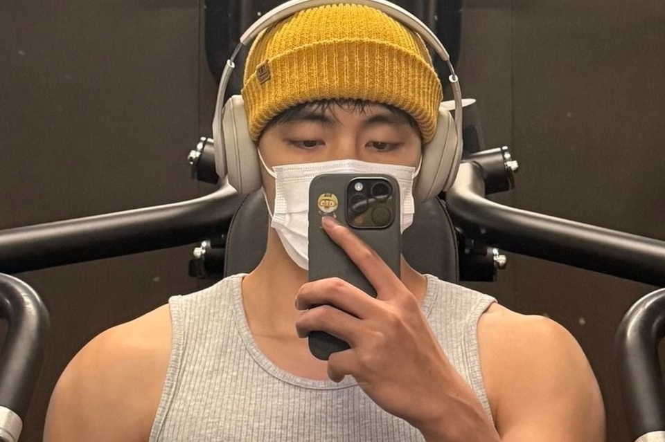Thân hình cơ bắp hiện tại của V (BTS). |