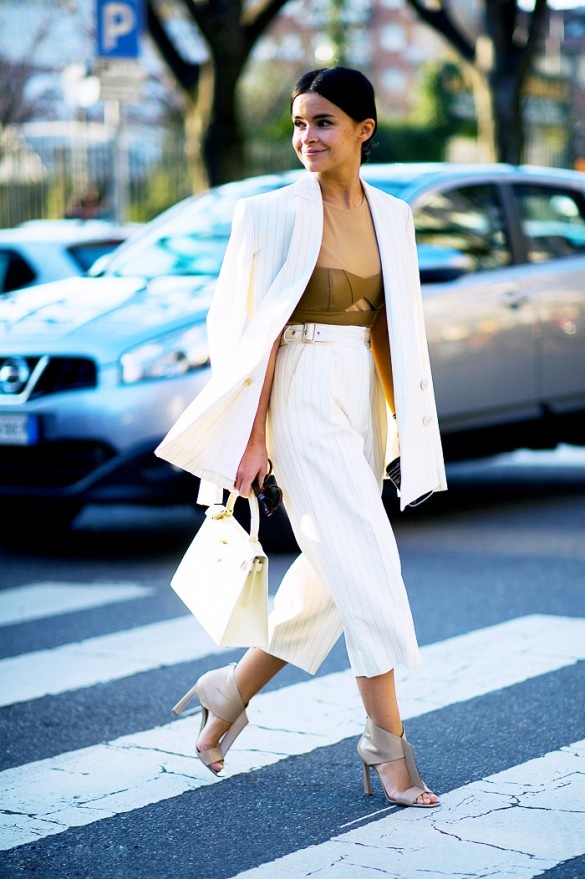 Một cách mix đồ rất nữ tính của Miroslava với tông trắng kem từ đầu tới chân.