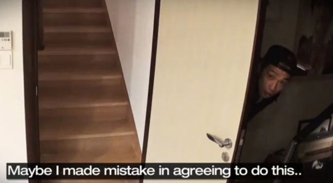 | Vì camera được gắn ở khắp nơi trong nhà, Rain phải thay quần... phía sau cánh cửa. |