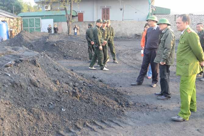 | Bí thư Thành ủy Hạ Long Vũ Hồng Thanh (bìa phải) kiểm tra điểm tập kết than trái phép. |