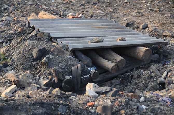 | Một lò than có dấu hiệu tái khai thác tại một điểm kiểm tra. |
