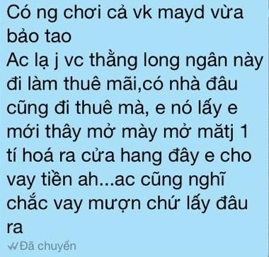 | Tin nhắn của một người bạn chơi chung với cả hai vợ chồng xác nhận chị dâu và anh rể của B.T đang vay tiền anh. |