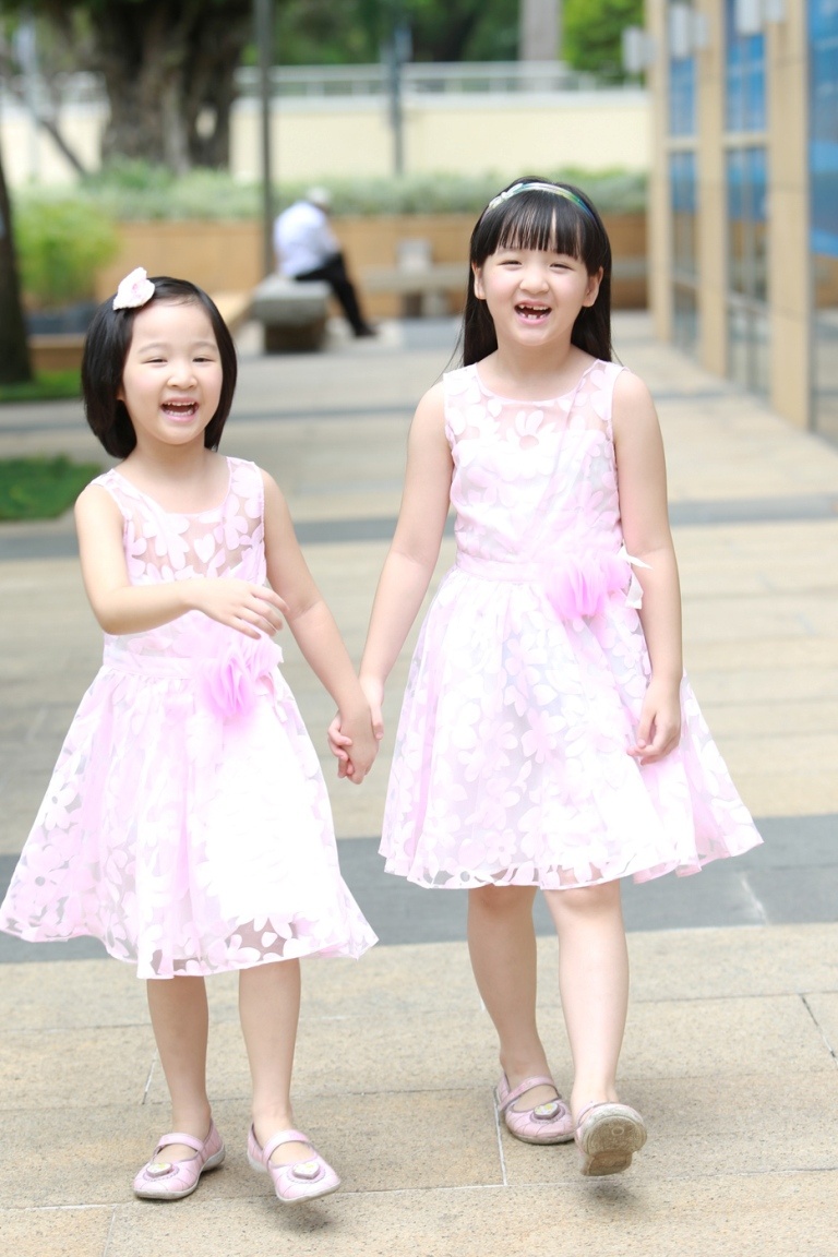 | Á quân Bích Ngọc cùng em gái tươi tắn trong bộ đầm voan mỏng, họa tiết hoa tinh tế, trang nhã. |