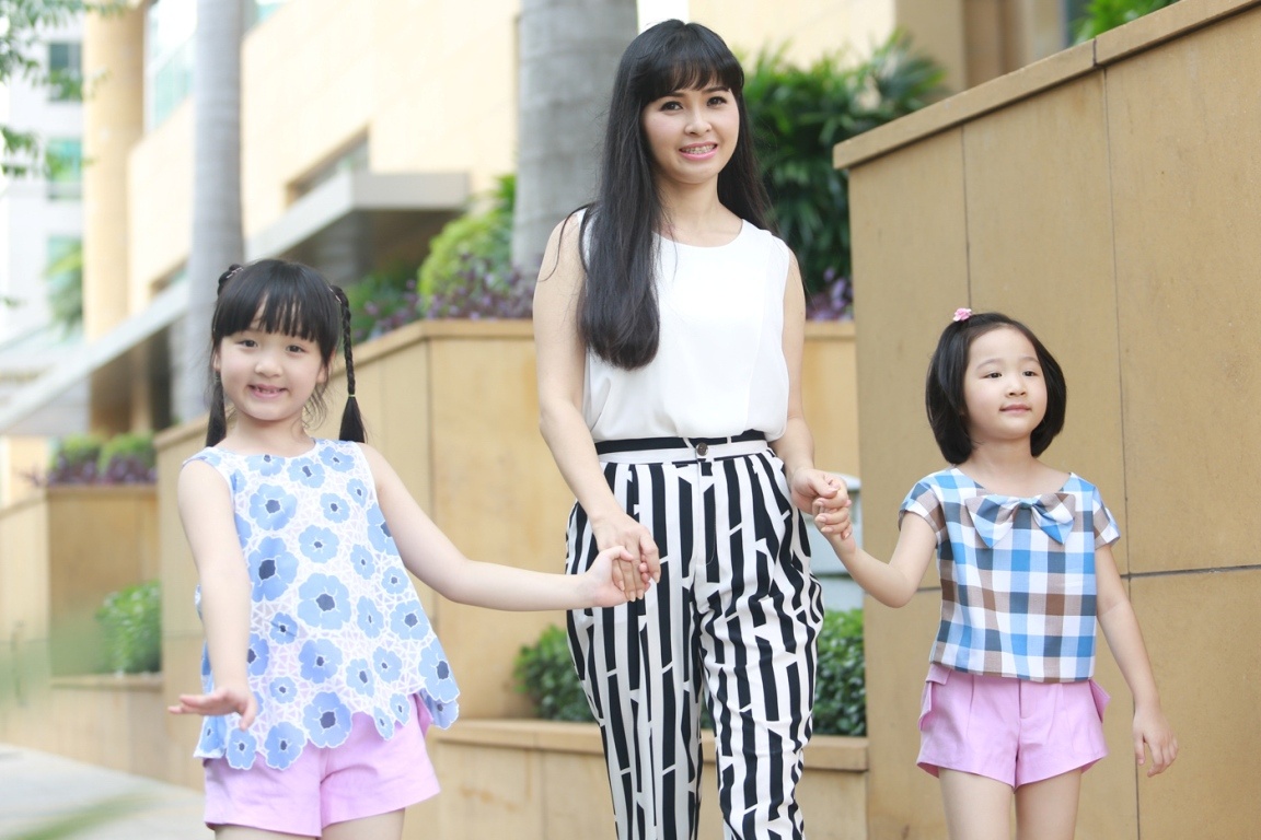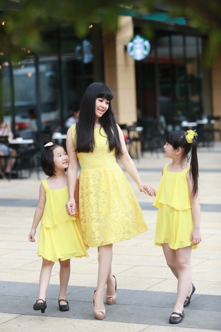 | Thời gian rảnh, bà mẹ 4 con cùng hai "công chúa" bé nhất nhà thực hiện bộ ảnh thời trang, giới thiệu phong cách ngày hè đến khán giả. |