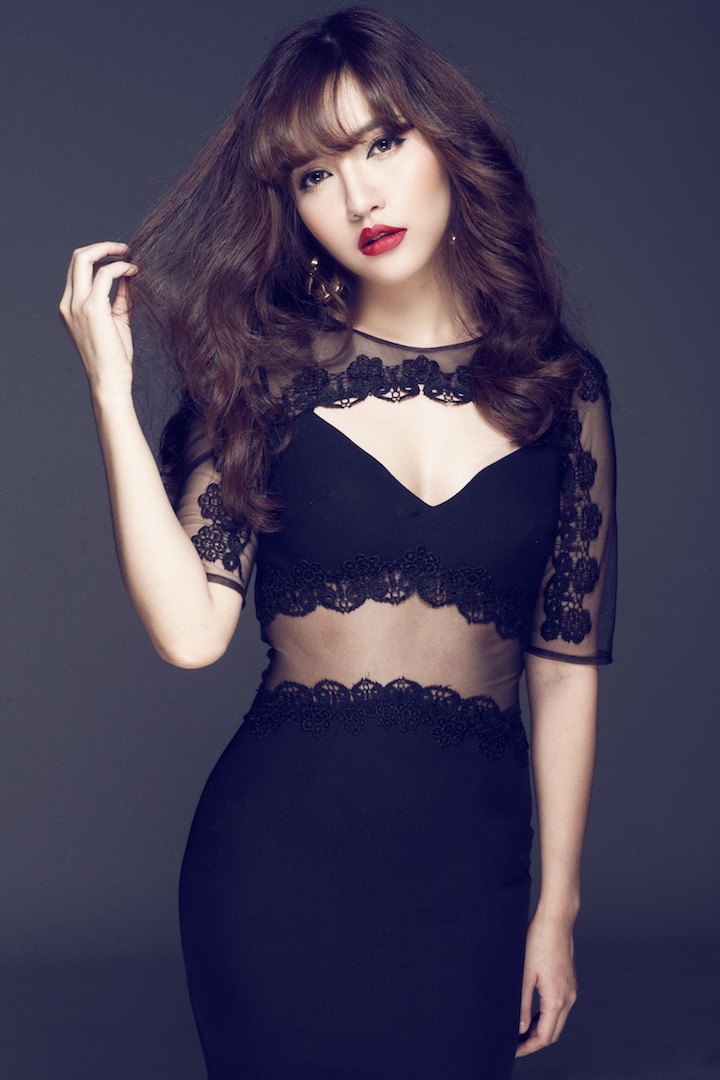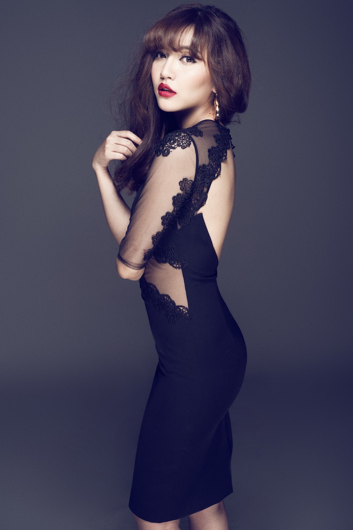 Ở set trang phục khác, nữ ca sĩ xinh đẹp thể hiện bộ cánh tông màu đen chất liệu voan ren quyến rũ. Thiết kế khoe khéo số đo vòng 1 gợi cảm...