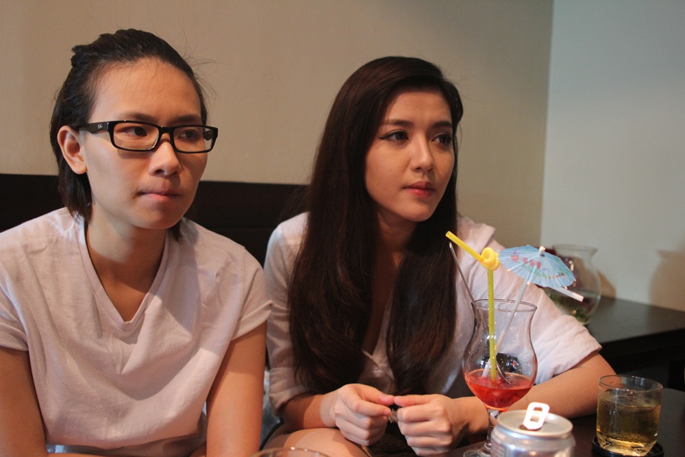 | Tiên Cookie và Bích Phương đang thuyết phục nhạc sĩ Vũ Quốc Bình hỗ trợ họ trong những dự án âm nhạc sắp tới. |