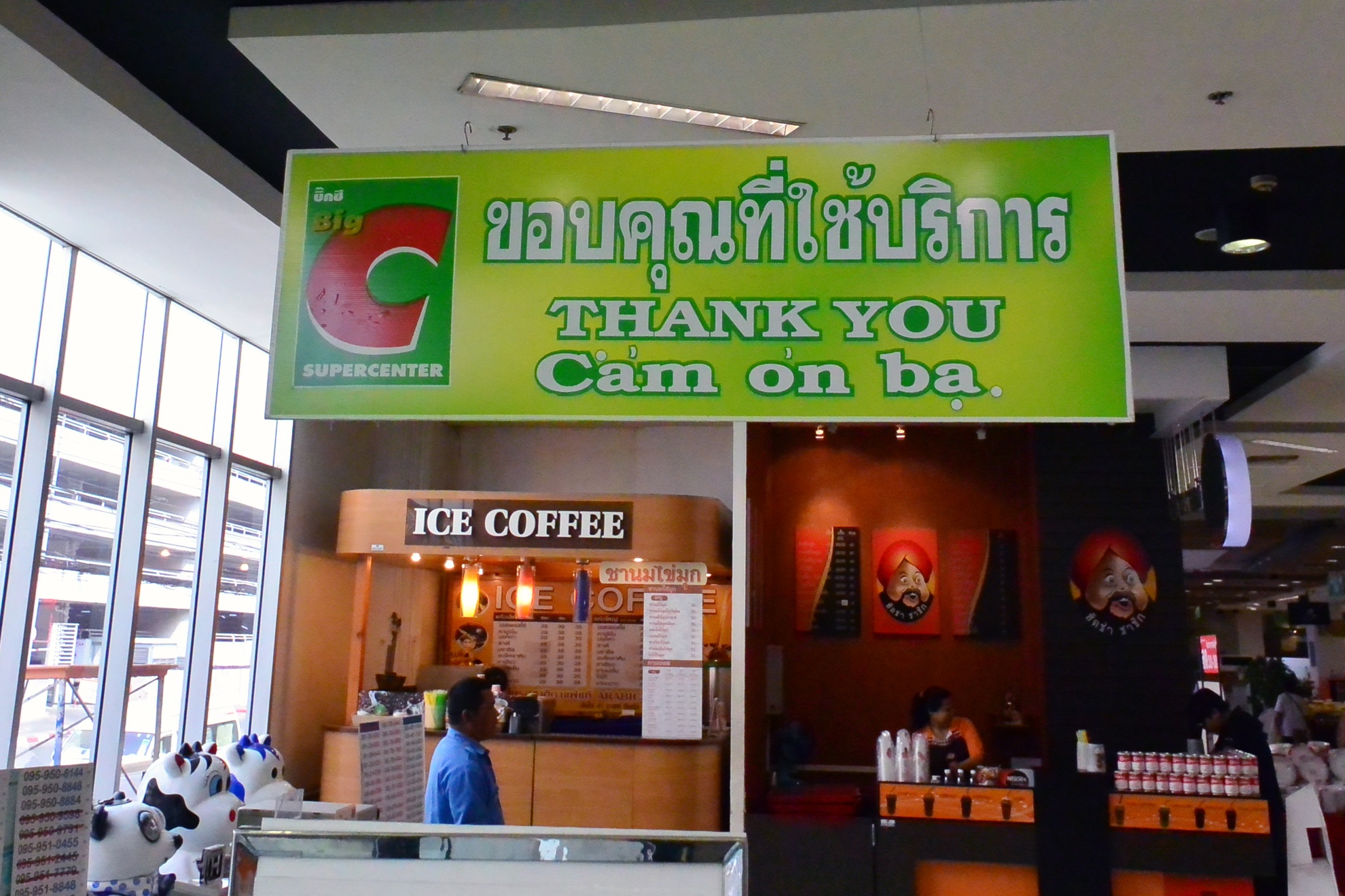 | Siêu thị Big C giữa trung tâm thủ đô Bangkok với dòng chữ ba thứ tiếng Thái - Anh - Việt. |