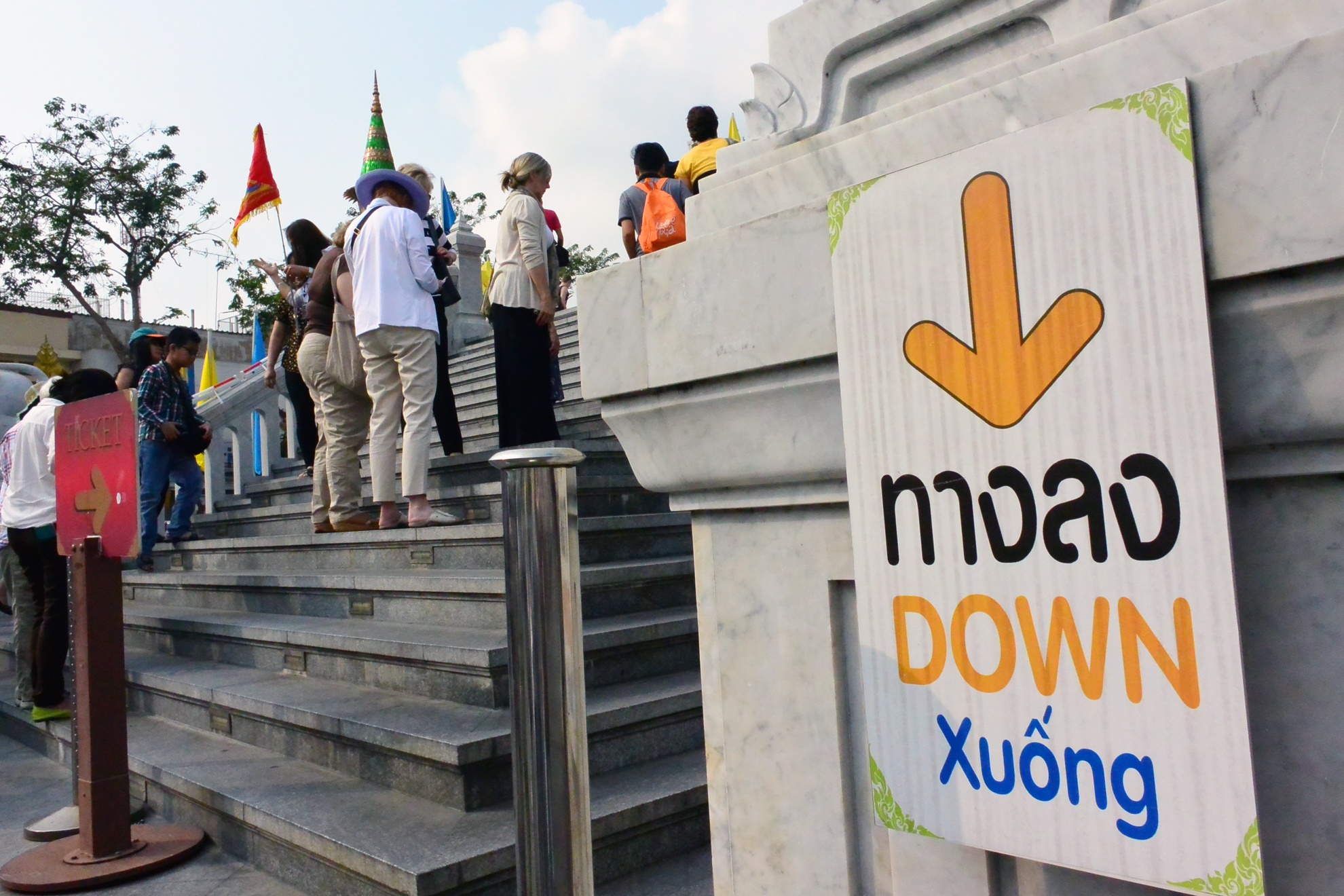 | Thùng bỏ tiền công đức tại chùa Wat Yannawa. Bên trong, nhà sư nói tiếng Việt sẵn sàng tiếp đón du khách. |