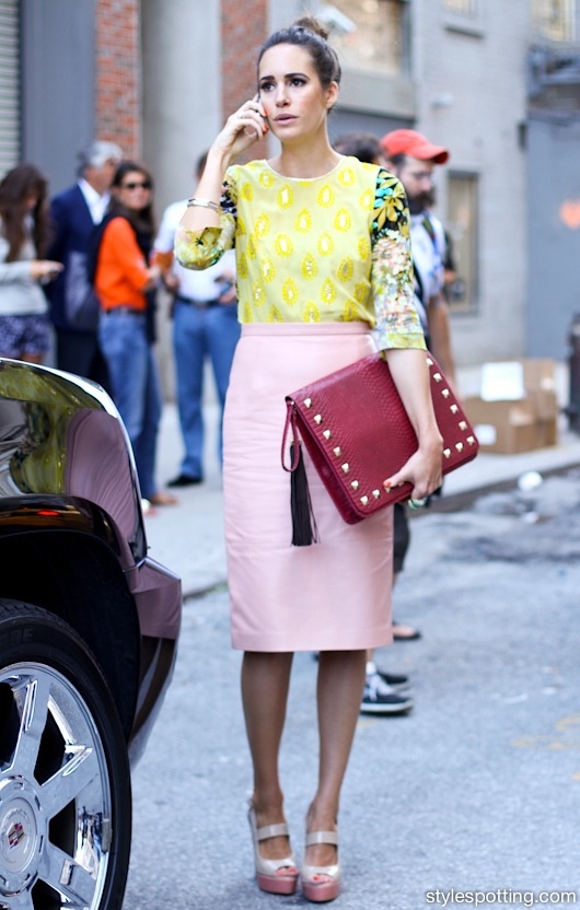 Thêm một gợi ý cho dân công sở với áo lụa và váy bút chì sáng màu.