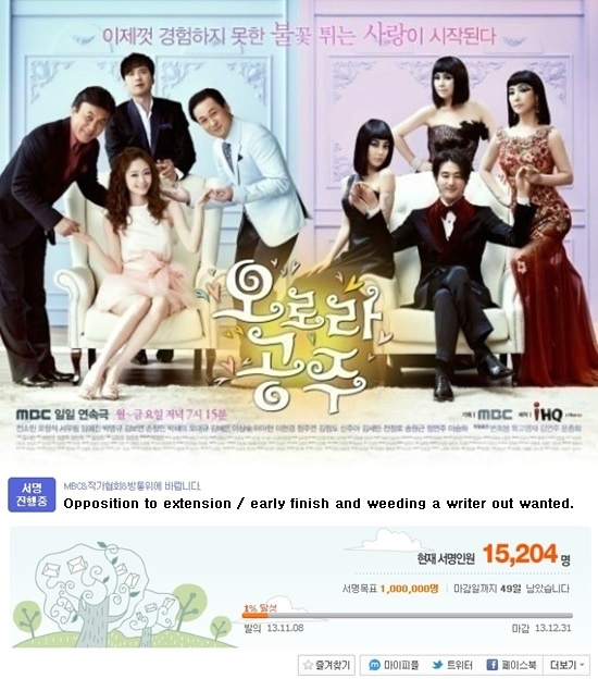 Trước giờ, làng phim Hàn vẫn được biết tới với những yêu cầu thêm tập từ người xem truyền hình nhưng đây là lần đầu tiên trong lịch sử, có một vụ vận động ký tên đòi phim dừng phát sóng chỉ vì khán giả muốn "trừng phạt" biên kịch. Hiện tại đã có hơn 15.000 người ký tên vào yêu cầu này và con số đó vẫn đang tiếp tục tăng lên.