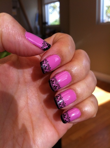 | Bộ nail hồng trở nên đặc biệt và khác lạ hơn bao giờ hết khi được "nhấn nhá" thêm hoạ tiết đen cầu kỳ. Chỉ cần một chút tỉ mỉ, một chút khéo tay, bạn hoàn toàn có thể thoả sức tung hoành trên nền màu hồng và tạo nên bộ móng "có một không hai". |