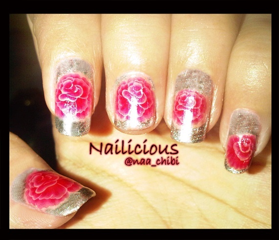 Bộ móng cầu kỳ cho cô nàng yêu thích hoa hồng.