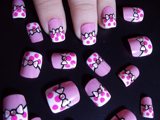 Những cô nàng nữ tính luôn "chết mê" với kiểu hoạ tiết chấm bi, nơ và trái tim xinh xắn.