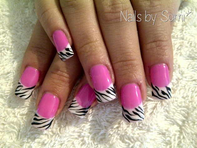 | Hoạ tiết ngựa vằn đen trắng khiến bộ nail hồng thêm phần cá tính. |