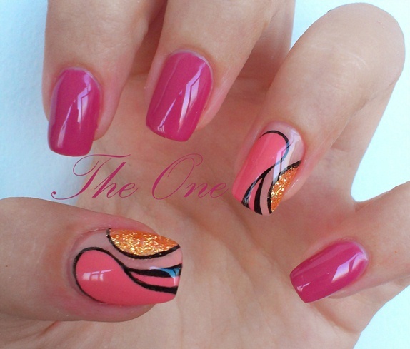 Bộ nail hồng nữ tính thêm phần bắt mắt và khác lạ khi được vẽ thêm những hoạ tiết cầu kỳ. Tuy nhiên, để không bị quá rối mắt, các bạn gái chỉ nên "kẻ vẽ" trên 2 ngón tay là đủ. Bớt chút thời gian để "nhấn nhá" và tô điểm cho bộ móng hồng, bạn sẽ có được kết quả như ý.
