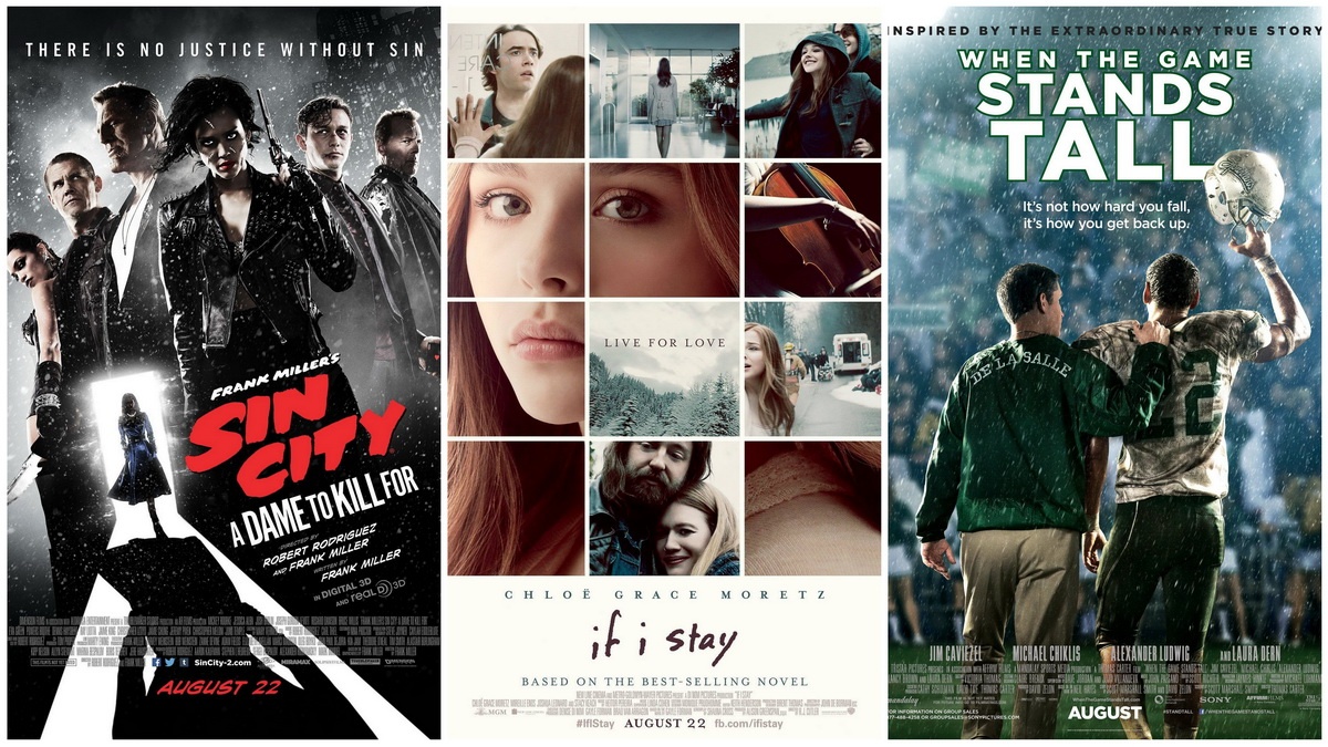 Trong cuối tuần này, ba bộ phim mới có số lượng rạp phát hành lớn nhất bao gồm: Sin City: A Dame to Kill For (2.750 rạp), If I Stay (2.500 rạp) và When the Game Stands Tall (2.600 rạp). Được khán giả chờ đợi suốt gần một thập kỷ qua, tập phim Sin City thứ hai nhiều khả năng sẽ lật đổ ngôi vương của các chú rùa tại Bắc Mỹ.