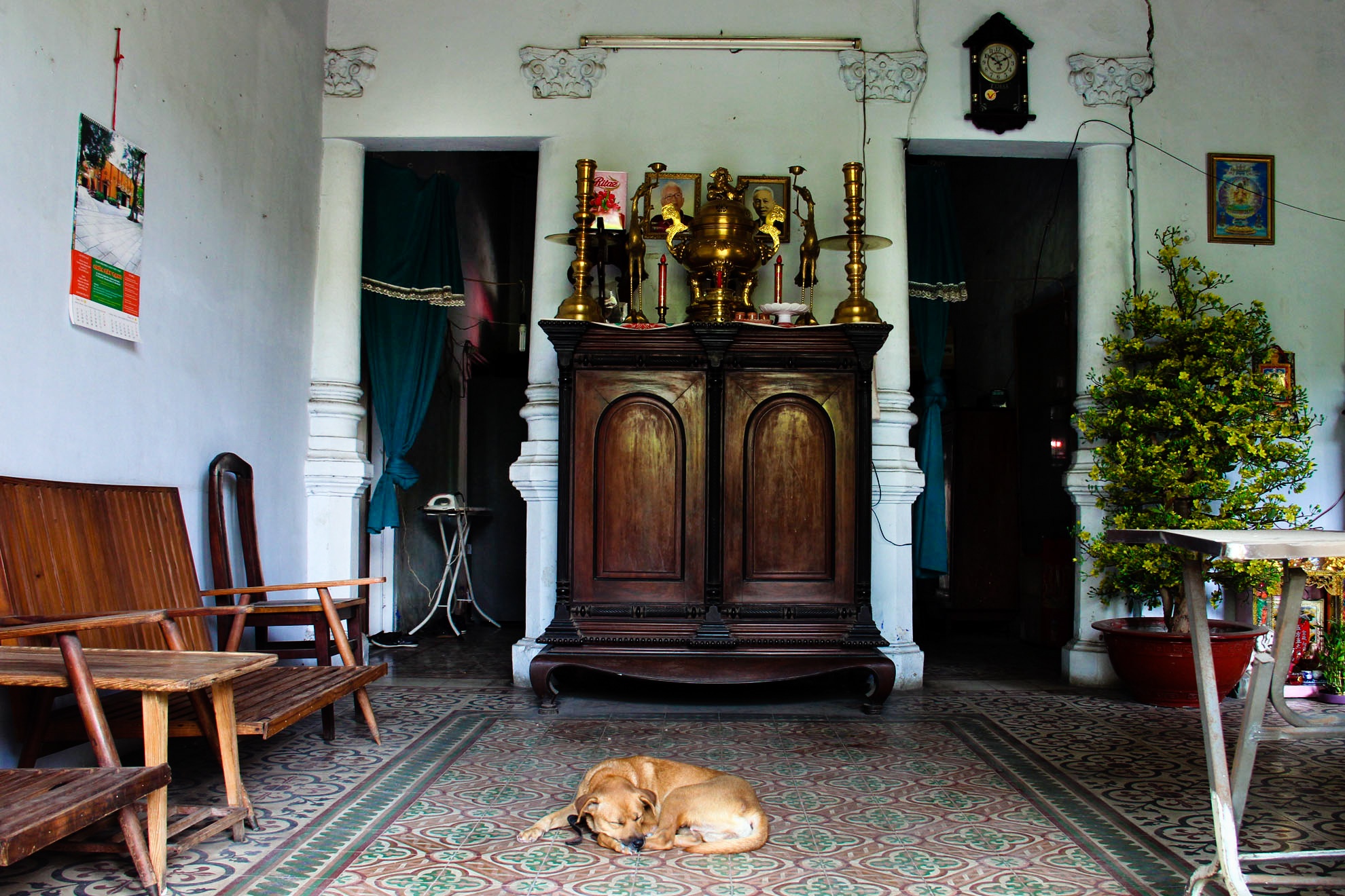 Chị Thanh Thảo - thành viên trong gia đình chia sẻ, bộ tủ thờ dùng mộng đóng vào với nhau gắn liền với ngôi nhà từ những ngày đầu tiên.