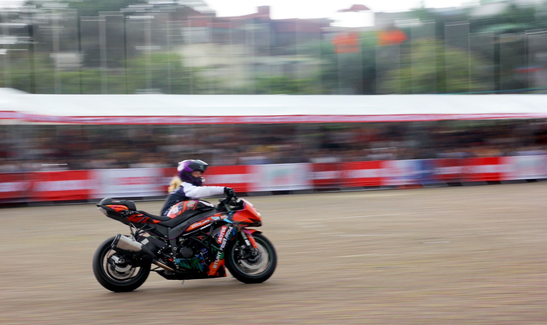 Motul Stunt Festival 2014 được tổ chức trong khuôn viên Cung thể thao Quần Ngựa vào sáng 28/6. Dù diễn ra vào ngày nắng nóng nhưng Motul Stunt Festival vẫn thu hút một lượng lớn khán giả đến xem.