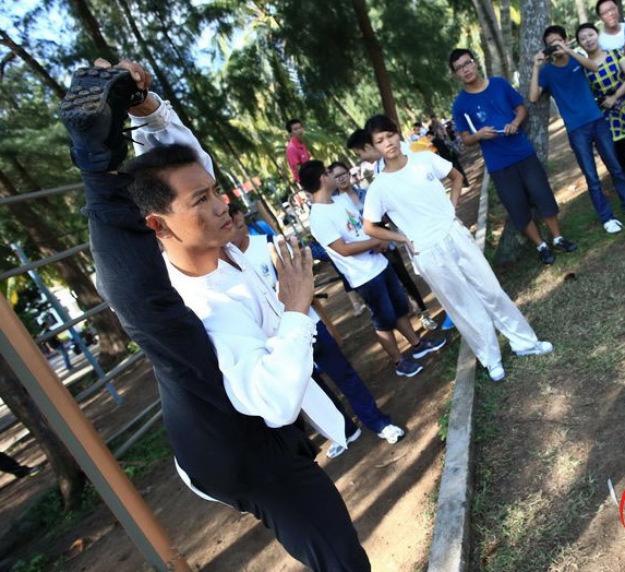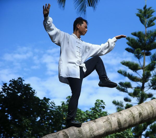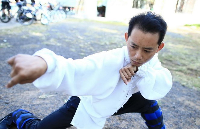 | Một động tác nhấc chân của vị võ sư. Ảnh: hinews.cn. |