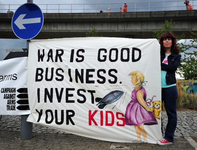 Hội chợ Trang thiết bị Quốc phòng Quốc tế (DSEI) là sự kiện thường niên diễn ra tại Excel, London. Đây là cơ hội để các nhà sản xuất vũ khí, thiết bị quốc phòng tiếp cận được những khách hàng thực sự có nhu cầu. Nó có lợi cho cả người mua và kẻ bán nhưng hoàn toàn bất lợi với các nạn nhân của những thiết bị quân sự này. |