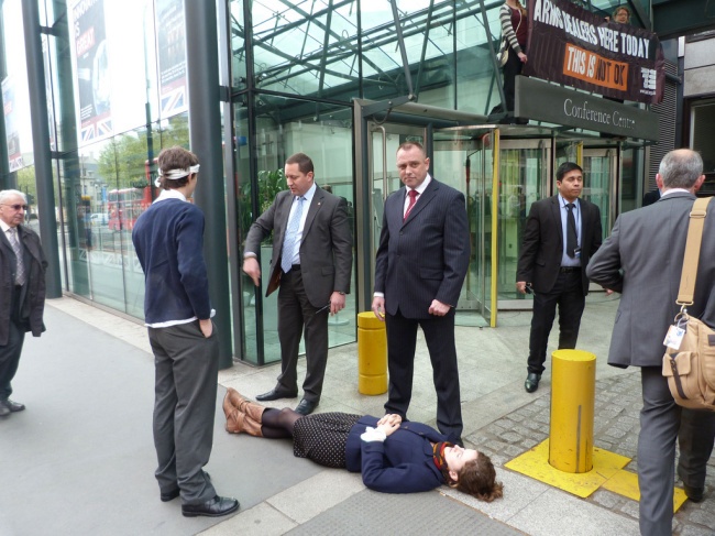 Các cuộc biểu tình được bắt đầu ngày hôm nay theo giờ London và sẽ kéo dài trong 4 ngày tới với sự tham gia của nhiều tổ chức phản đối chiến tranh ở Anh. Ông Sarah Waldron của tổ chức Chống thương mại hóa vũ khí cho biết: “Đây thực sự là một sự giả dối đáng sợ. Khi nước Anh và phương Tây đang lên án mạnh mẽ việc sử dụng vũ lực của chính phủ Assad, hội chợ lại mời những công ty cung cấp vũ khí cho chính phủ của ông ta và những kẻ tàn bạo khác tới mua bán tại London”. |