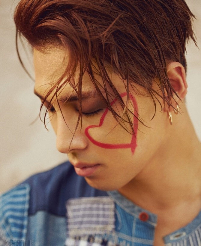 | Tae Yang ngọt ngào với trái tim trên mặt. |