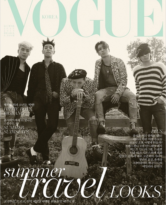 | Big Bang được tạp chí thời trang danh tiếng Vogue chọn làm gương mặt trang bìa cho ấn phẩm tiếng Hàn số tháng 7. |