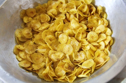 | Như vậy là bạn có hai vị bim bim chuối khác nhau rồi. Cách làm bim bim chuối thật đơn giản. Giờ bạn chỉ việc thưởng thức bim bim chuối vị ớt hoặc vị hạt tiêu. |
