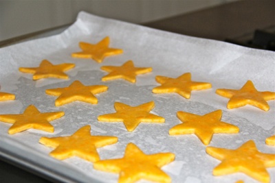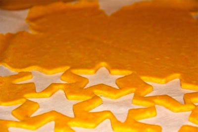 | Cán hỗn hợp mỏng chừng 0,5cm rồi cắt thành từng miếng tùy ý. Các bạn cũng có thể dùng khuôn cắt bánh để tạo hình cho bim bim đẹp hơn. |
