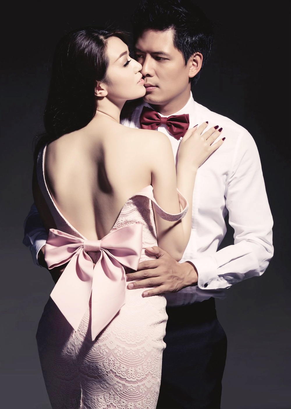 | Trong một shoot hình, chân dài làng mẫu ngồi trong lòng nam diễn viên Vật chứng mong manh tình cảm. |