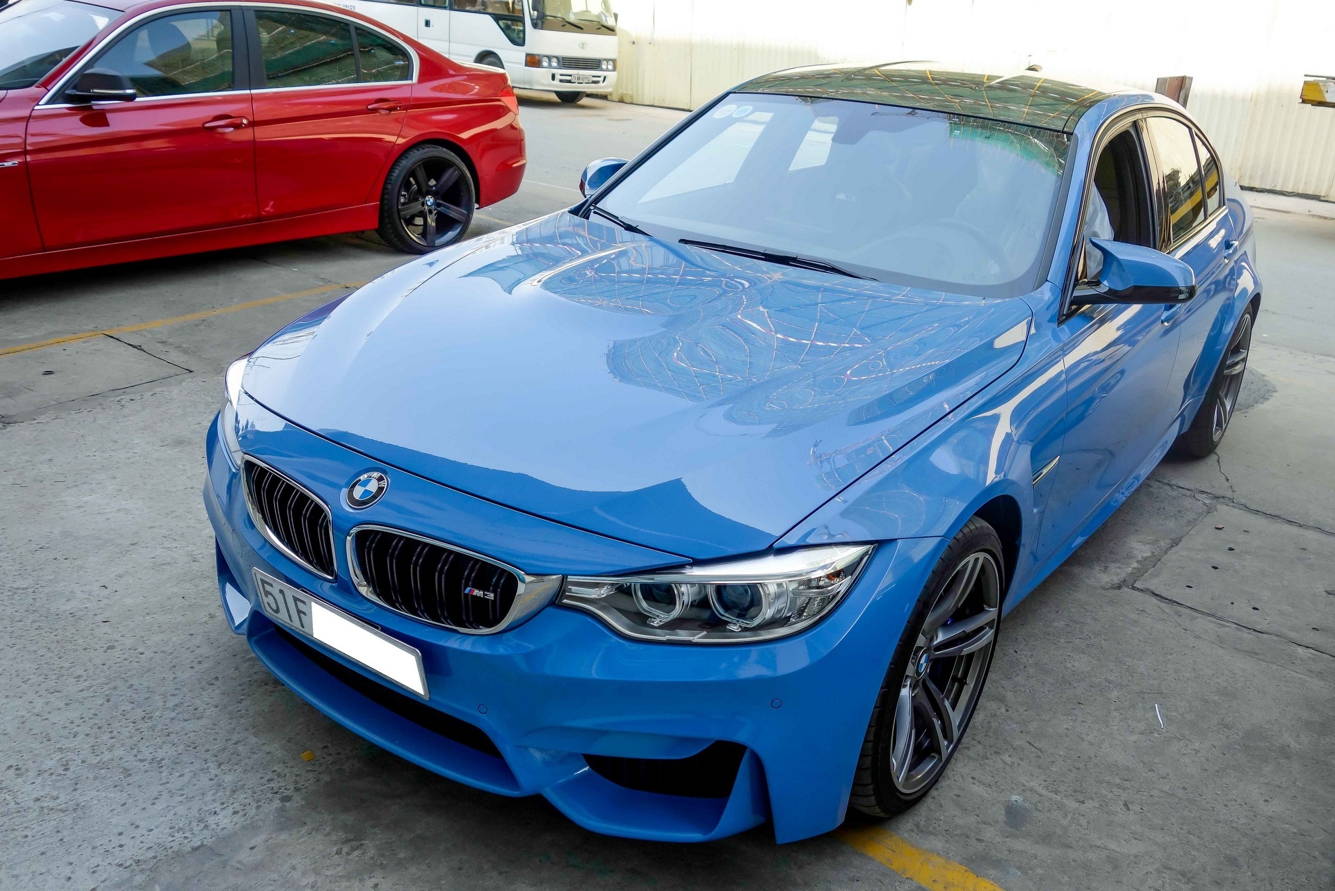 Đây là chiếc M3 thế hệ thứ 5, mã sản xuất F80, màu sơn Yas Marina Blue khá độc đáo. |