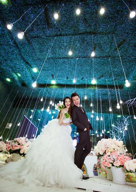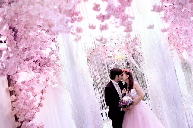 | Cặp đôi bồng bềnh như trong thế giới cổ tích với sắc màu hiện đại tại phim trường. |