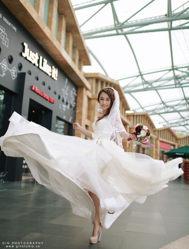 Xuất hiện trong bộ ảnh mới, hot girl Quỳnh Nhi hóa thân thành cô dâu xinh đẹp trong bộ váy cưới lộng lẫy, được cộng đồng mạng rất thích thú.