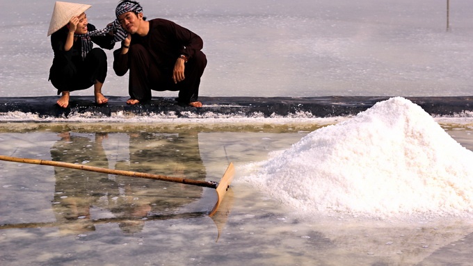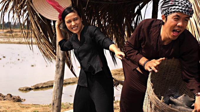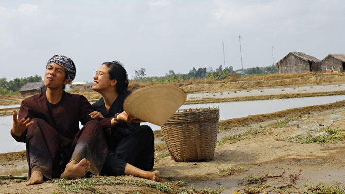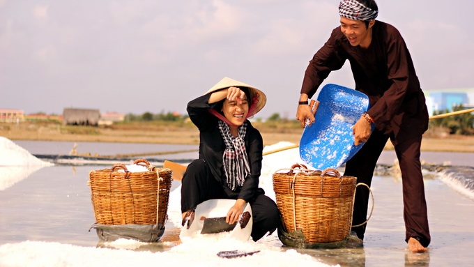 | Hải An và Thảo Nguyên đã chọn câu chuyện tình rất đời thường của đôi vợ chồng trẻ kiếm sống bằng nghề làm muối. Tuy cơ cực nhưng mái tranh nghèo luôn đầy ắp tiếng cười. Ngoài làm muối, họ còn chăn cả một bầy dê. |