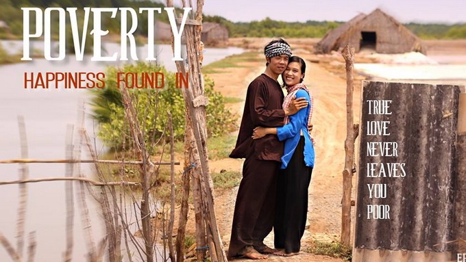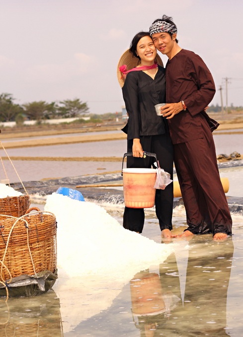 Trang phục cho bộ ảnh cưới độc đáo là khăn rằn và bộ đồ bà ba rặt nông dân. Bối cảnh là cánh đồng muối ở xã Lý Nhơn, huyện Cần Giờ, TP.HCM. Hải An và Thảo Nguyên đã chọn câu chuyện tình rất đời thường của đôi vợ chồng trẻ kiếm sống bằng nghề làm muối, tuy cơ cực nhưng mái tranh nghèo luôn đầy ắp tiếng cười.